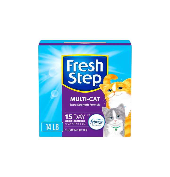 - FRESH STEP CLUMPING CAT LITTER: One 14 lb. box of Fresh Step Multi Cat Clumping Litter, Extra Strength Formula With Febreze Freshness, designed for multi cat homes.